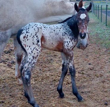 Ghost is a gorgeous, big spotted, gentle, intelligent stallion with a phenomenal disposition that he passes on to all of his foals. He is the perfect size standing at 15hh with good bone, not to mention his beautiful coloring that gets him noticed everywhere!