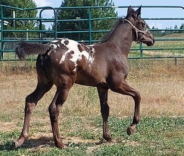 Sabre is a ten-year-old, and the first F7 in our breed. He’s now standing at Blue Creek Appaloosas. He is graceful, sure-footed and easy to tack. Being LP/LP he would be a perfect pairing for a non-characteristic mare. In addition to the great work at Foggy Valley Farms, his pedigree includes results from Jim Langdon of Red Hill Appaloosas in the form of RHA Iron Mountain and Pratt’s Sully Fire. A great opportunity to buy a breeding from long established lines.