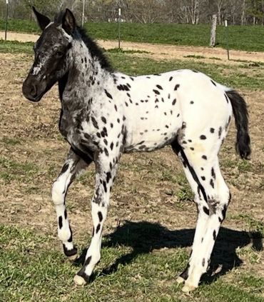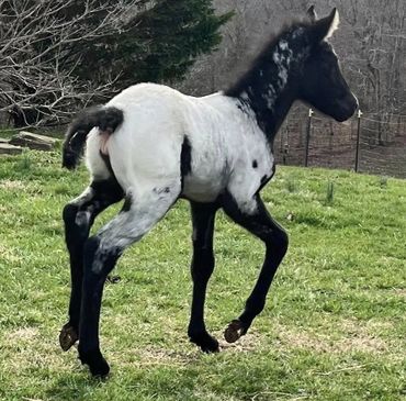 Replica has five beautiful foals on the ground as of 2025. He did not disappoint! He will bring intelligence, size, and bone structure to your next foal! He has been trained under saddle and is noted to be a highly intelligent and thoughtful stallion. He can produce all coat patterns when paired with the right LP/LP mare carrying pattern.